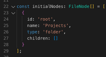 Third, I removed the “.txt” files from the initialization phase, and changed the root node name to “Projects”: