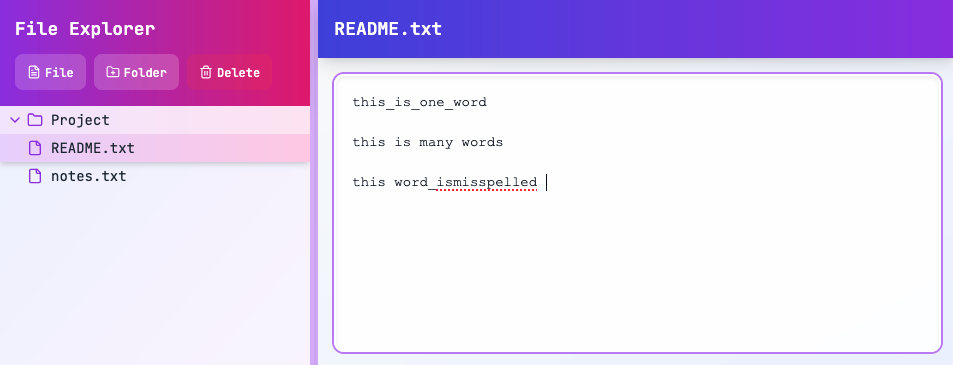 app that has a tree view window of folders and contained plaintext documents on the left pane, and a plaintext view/edit window on the right pane.